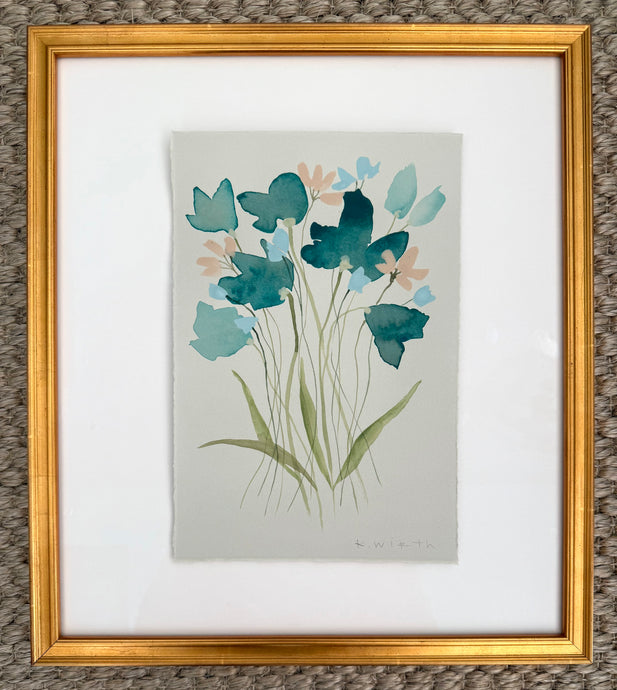 7.5”x11” floral on soft grey paper - IV