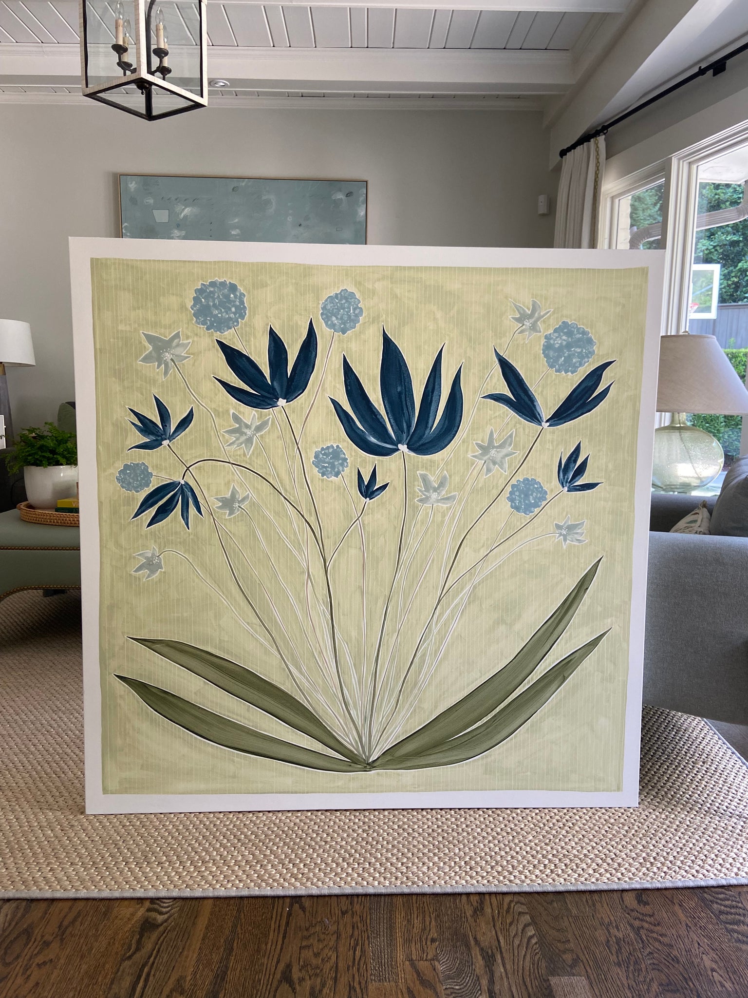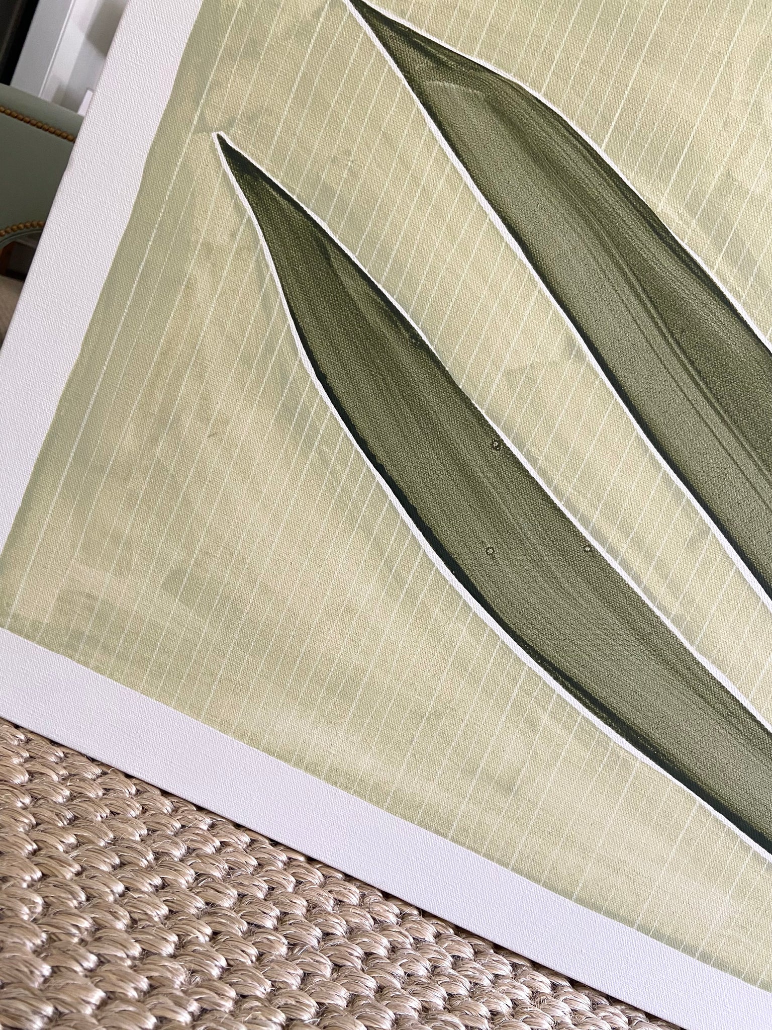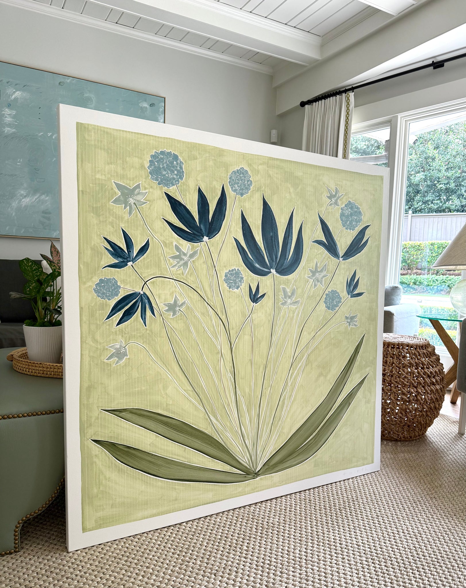 Acrylic and pencil on gallery-wrapped canvas. Ready to hang as-is, or I’m happy to add a soft white, wooden float frame for additional charge after purchase, if desired.